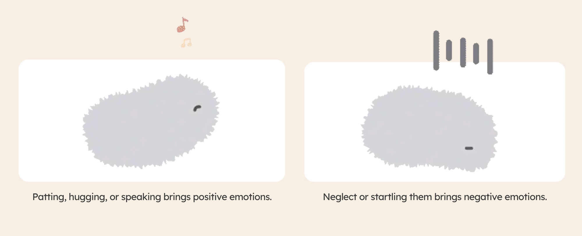 What if your artificial pet didn't always act according to the instructions book it came with or the way you expected it to for whatever preconceived reasons you might have? And instead of machinelike flawlessness and predictable programming, it instead has a kind of simulated awareness. and awareness that can translate into unexpected behaviour and have glitches so to speak. These tiny anomalies, or irregularities, feel less like bugs in the code and more like a Gilbert Ryle's "ghost in the machine". These somewhat real-feeling behaviours take us into the very complex territory of fostering emotional connections with these entities.