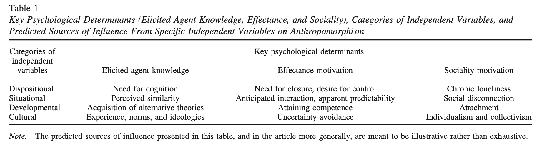 In their paper, "On Seeing Human: A Three-Factor Theory of Anthropomorphism," they identified three key factors: