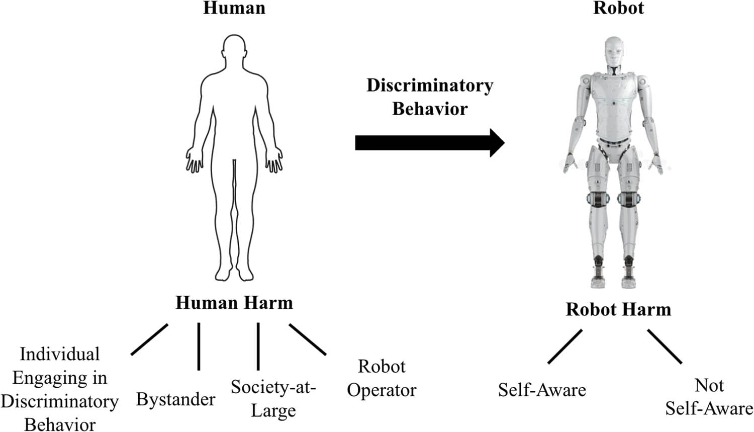 | Bystanders | Witnessing robot discrimination can cause psychological stress, depression, or health issues (“witness harm”). |